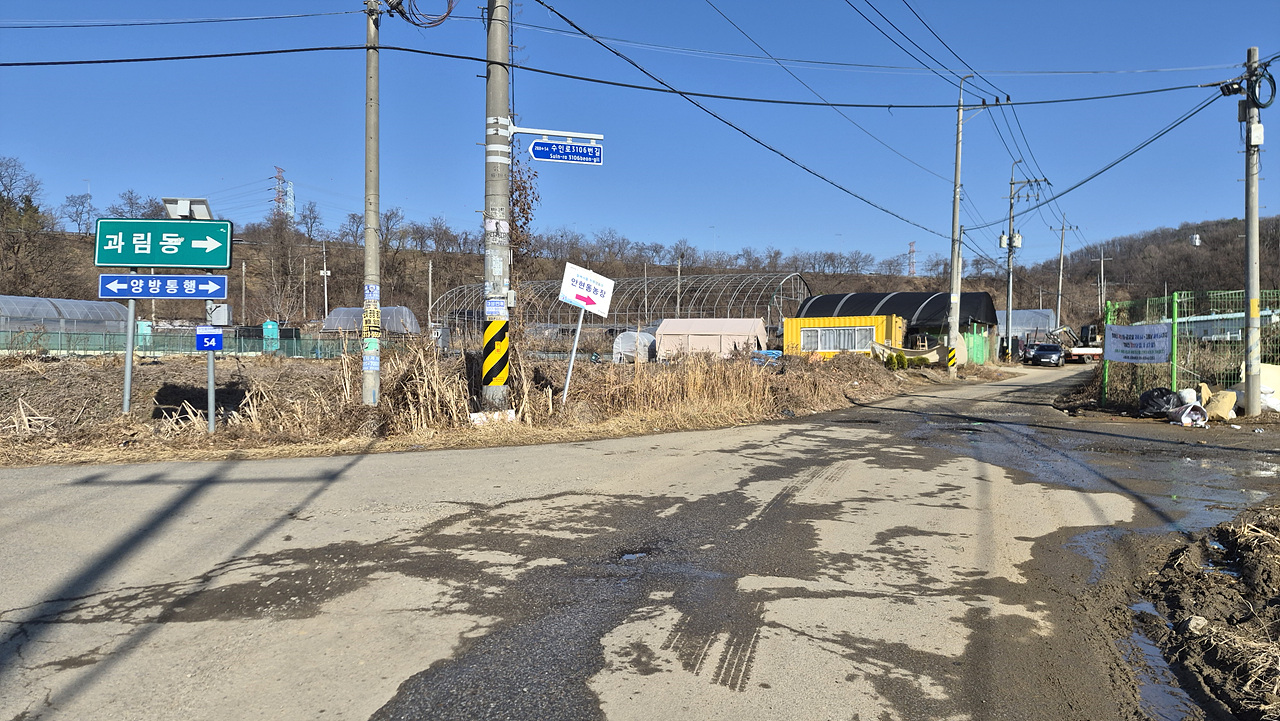 (이후는 사유지 울타리에 막혀 진행이 불가하고 우측 과림풋살장쪽 나와 붙을 만한 곳을 찾아 보았지만 마찬가지 울타리에 막힌 상태... 수인로3106번길로 나가는 쪽까지 막혀 고속도로 아래로 빽을 하는 방법밖에 없다)