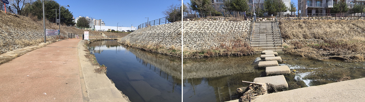 (천변과 우측 둑방쪽은 공사중이라 진입금지)