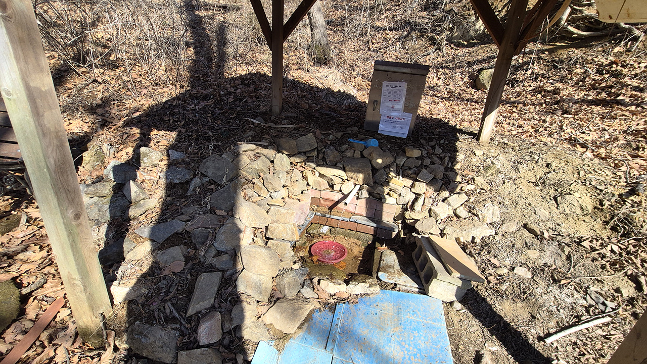 (아까 사격시 우회하라는 그 길을 만난 것... 감칠맛나는 약수터가 있지만 음용 부적합 판정이라고 한다)