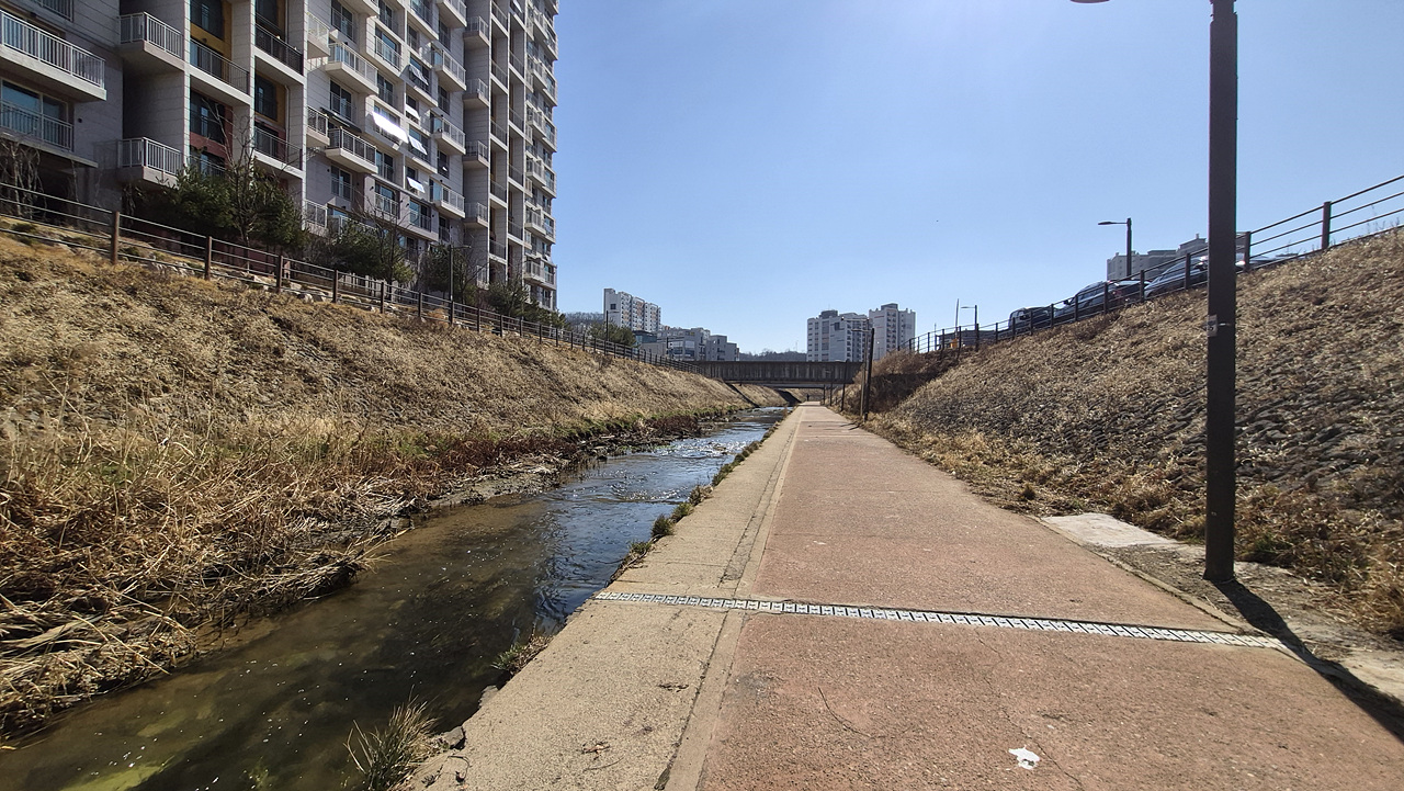 (수인로3090번길로 건널 생각을 했는데 수로 덕분에 조금 덜 돌아가는 것 같다)